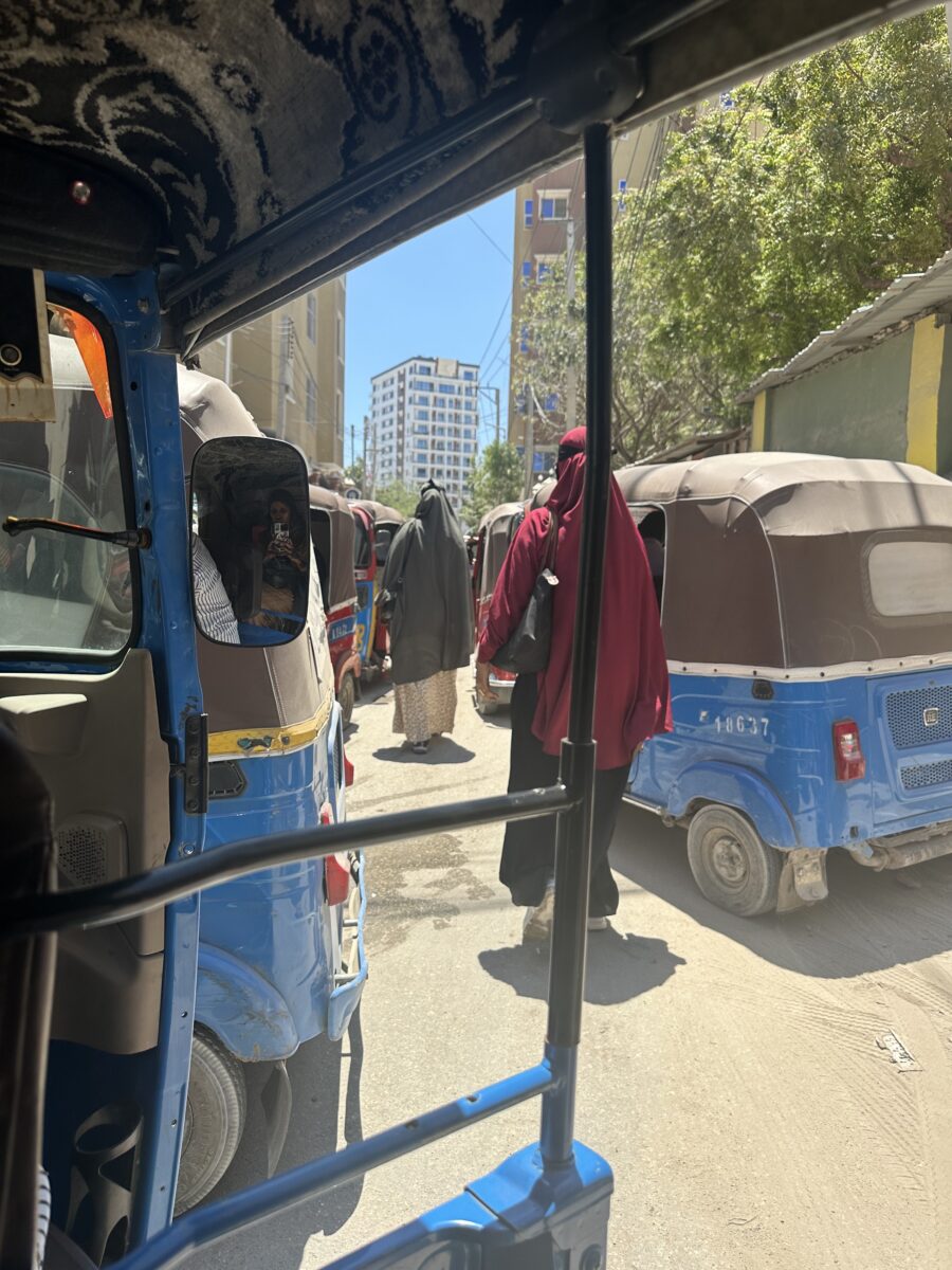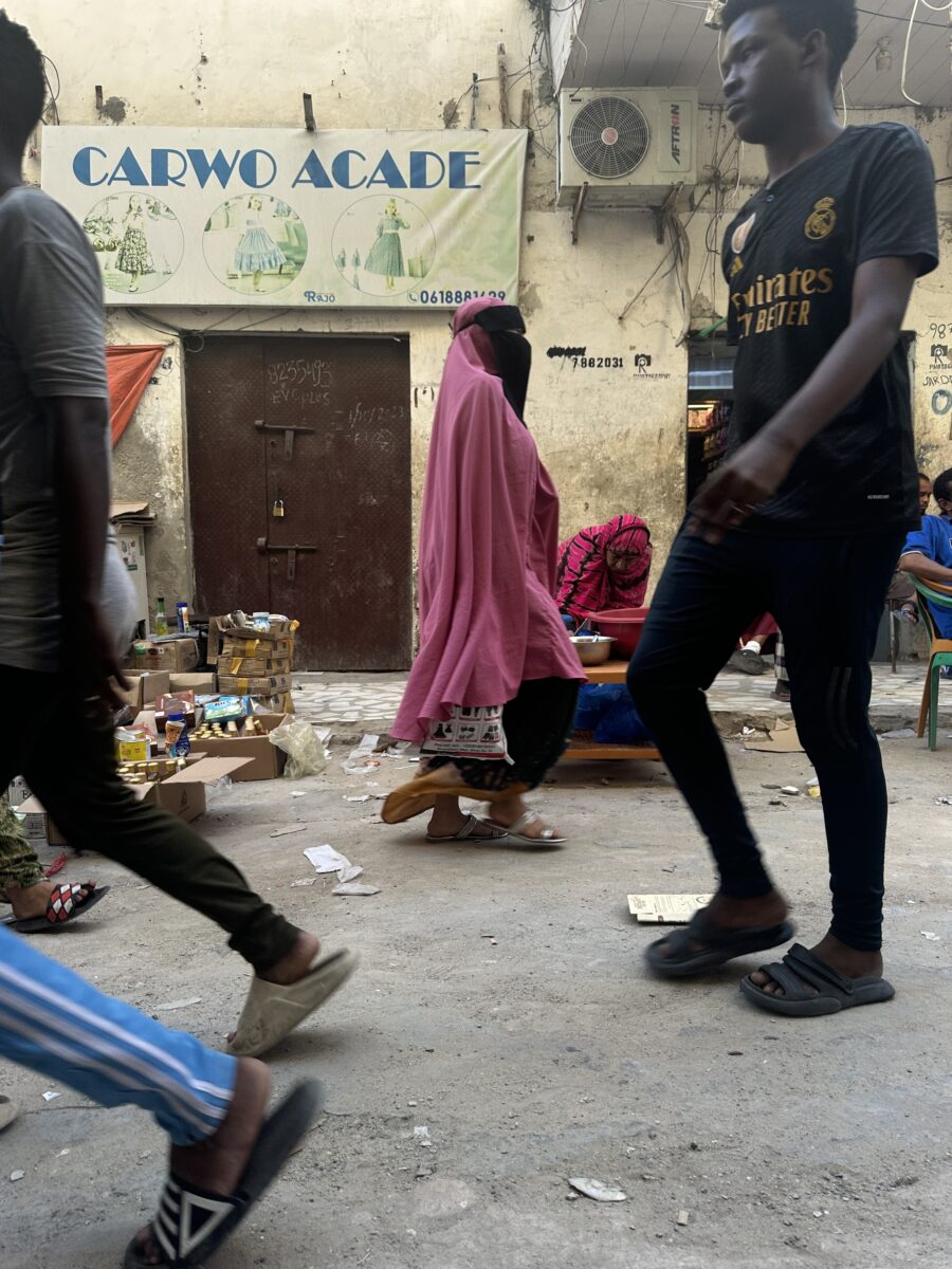 Several moments deepened my reflection on how gender shapes access to public space. At an outdoor cafe in Mogadishu, the staff greeted my friend and me and directed us towards the indoor women’s section. Utilising my diaspora confidence and privilege, I purposely requested to sit outside, a small decision that makes us visible, out of place, and unfamiliar with the city’s unwritten rules.